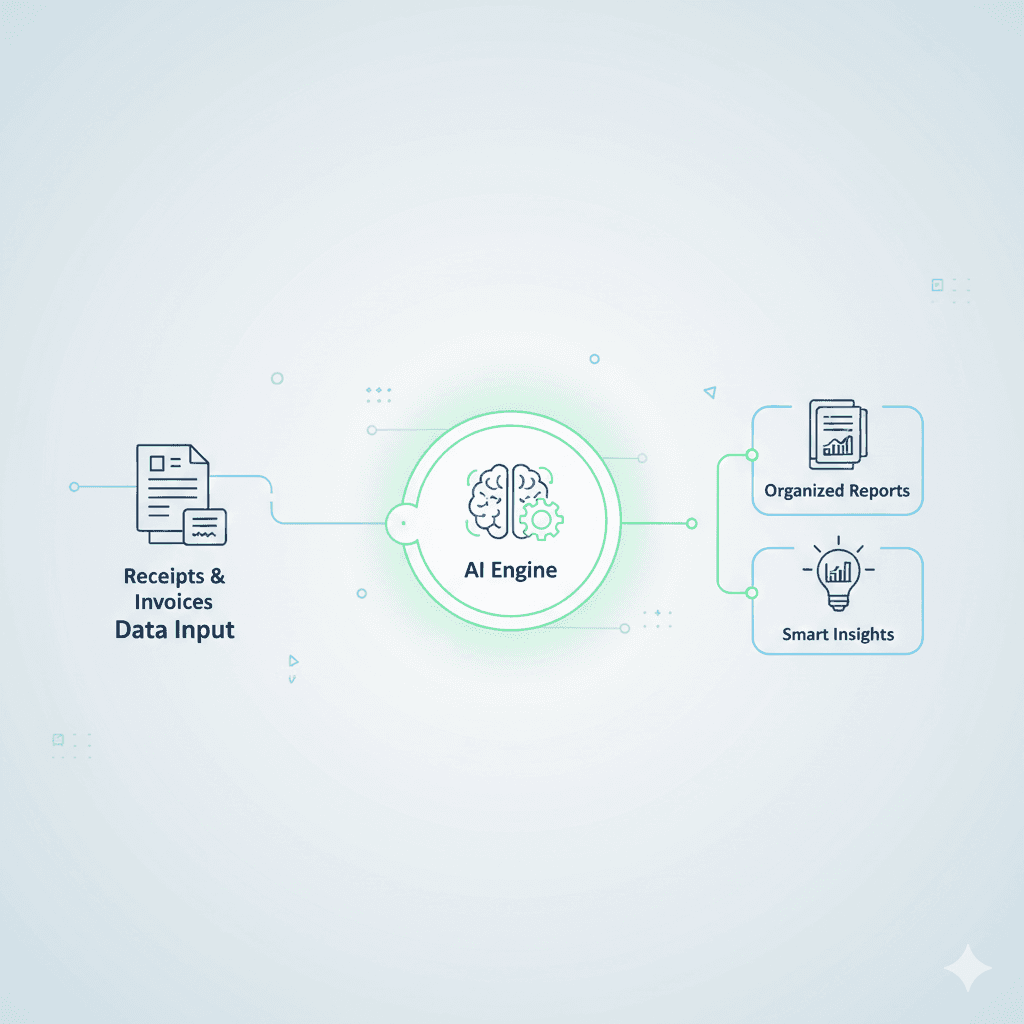 Easy AI accounting means using software that works quietly in the background while business owners focus on operations. Instead of manually entering every bill or expense, AI helps capture and record data automatically.